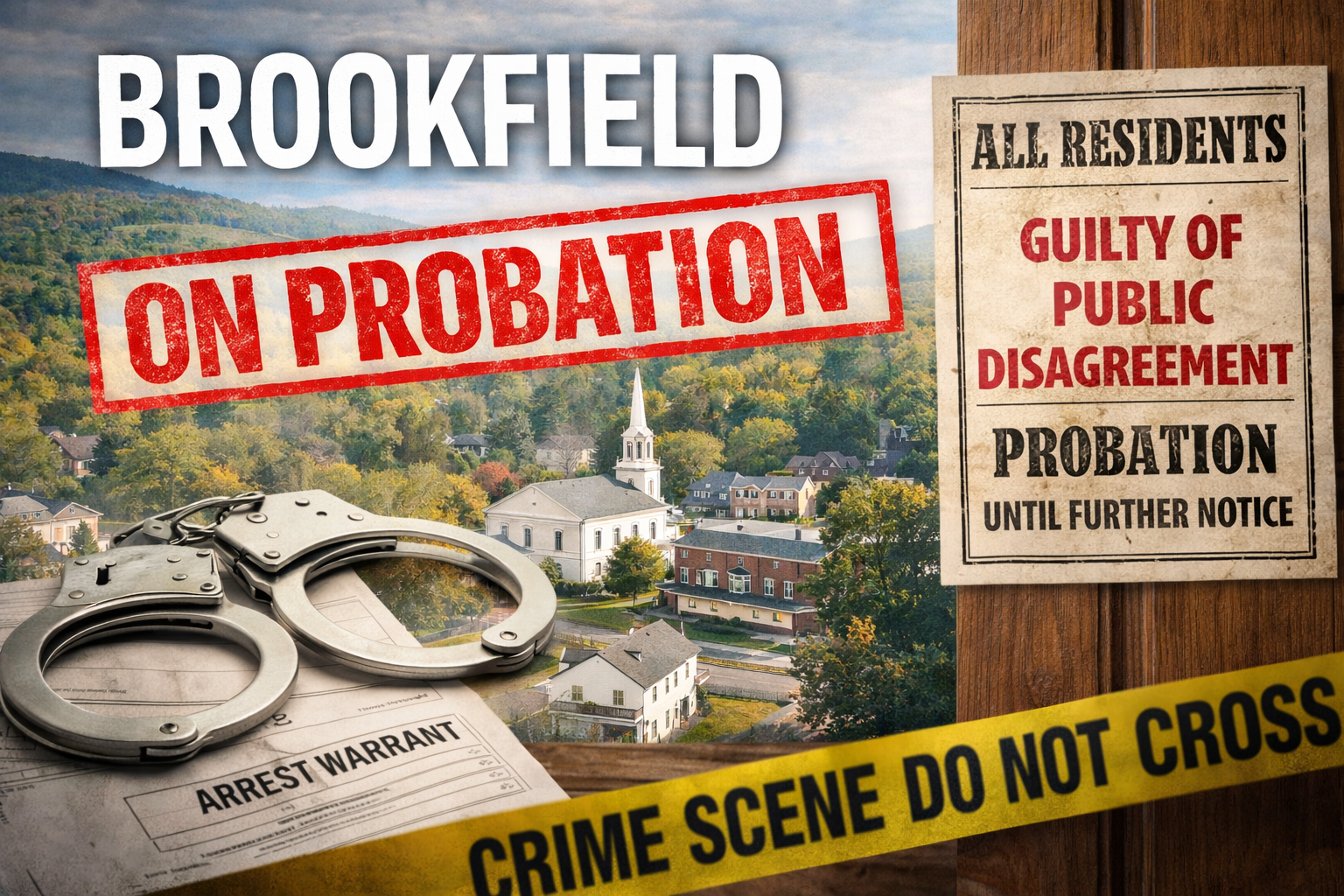EDITORIAL: ALL BROOKFIELD RESIDENTS PLACED ON PROBATION FOLLOWING SINGLE COUNT OF DISAGREEMENT BROOKFIELD — In what can only be described as a sweeping disciplinary action, the entire population of Brookfield has been placed on indefinite probation following a recent meeting in which one resident engaged in conduct deemed unacceptable: disagreement.